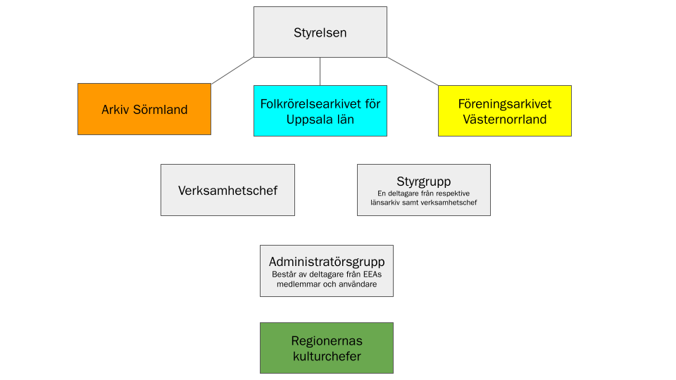 Har fler enskilda arkivinstitutioner anslutit sig och hur drivs samarbetet mellan arkivinstitutionerna? Det är ett stort intresse från enskilda aktörer, föreningar och företag i landet. Intresset från andra länsarkiv har varit stort och några av dem har redan anslutit sig. Vi känner oss stolta över att kunna erbjuda en bra lösning för digitalt bevarande till alla intresserade – ingen utesluts. De som ansluter sig är antingen medlemmar med möjlighet att påverka EEA eller användare. Det finns även möjlighet att ta del av EEA:s tjänster på annat sätt.